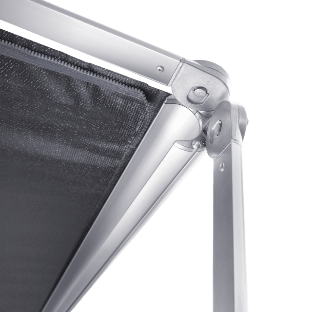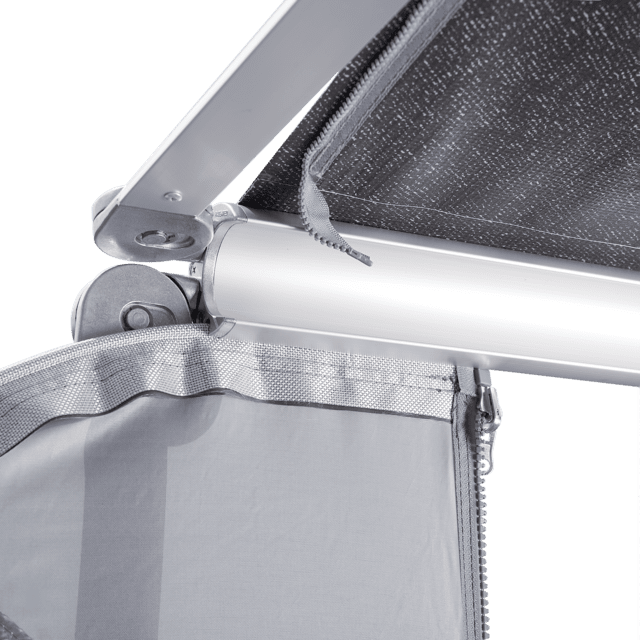 Front wall slides into the Revo Zip awning front rail and zips to the side walls