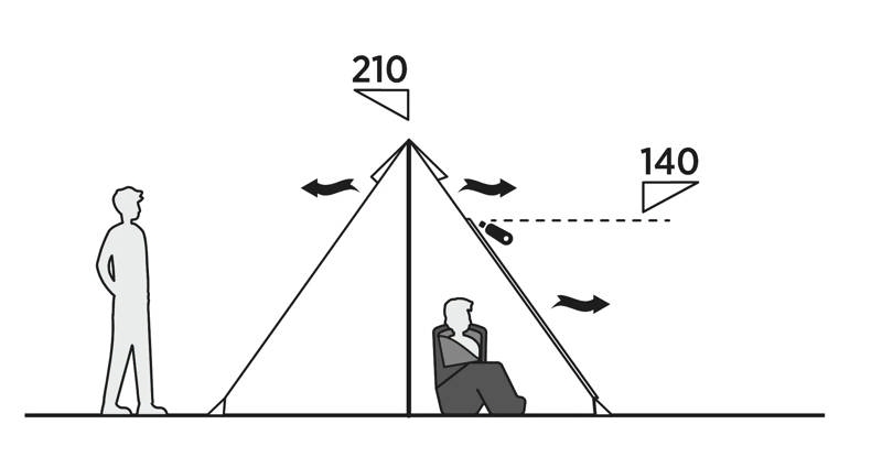 A-frame pole system which means no centre pole Mesh door can be zipped to groundsheet for a tight seal Covered roof vent to create good airflow throughout the tent Flap down or toggle up groundsheet in the door Mesh door to create superb ventilation options Tent comes with glamping bunting